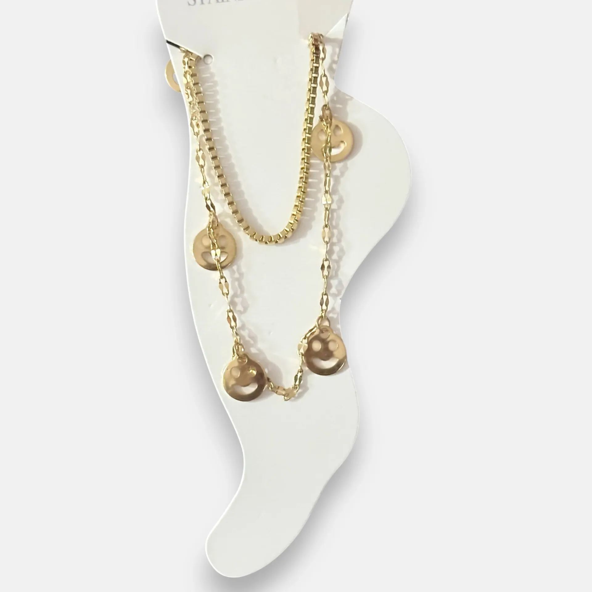 Pozitif enerjiyi yansıtan bu neşeli çift zincir çelik halhal, gülen yüz figürleriyle mutluluğu ayaklarınıza getirir. Kararma yapmayan çelikten üretilen bu halhal, günlük kombinlerinizde enerjinizi artırır.