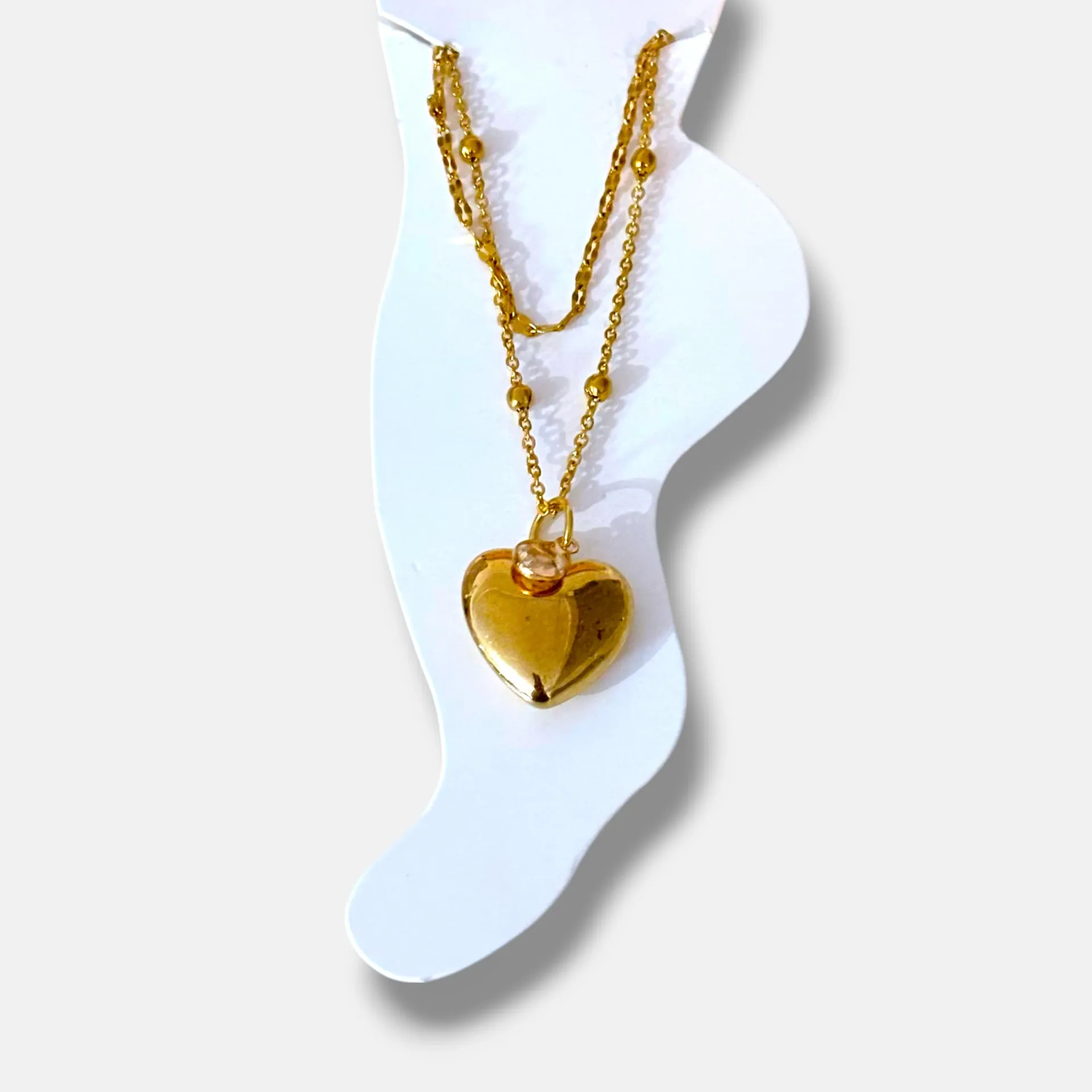 Tasarım: Çift zincir, büyük kalp sallantılı