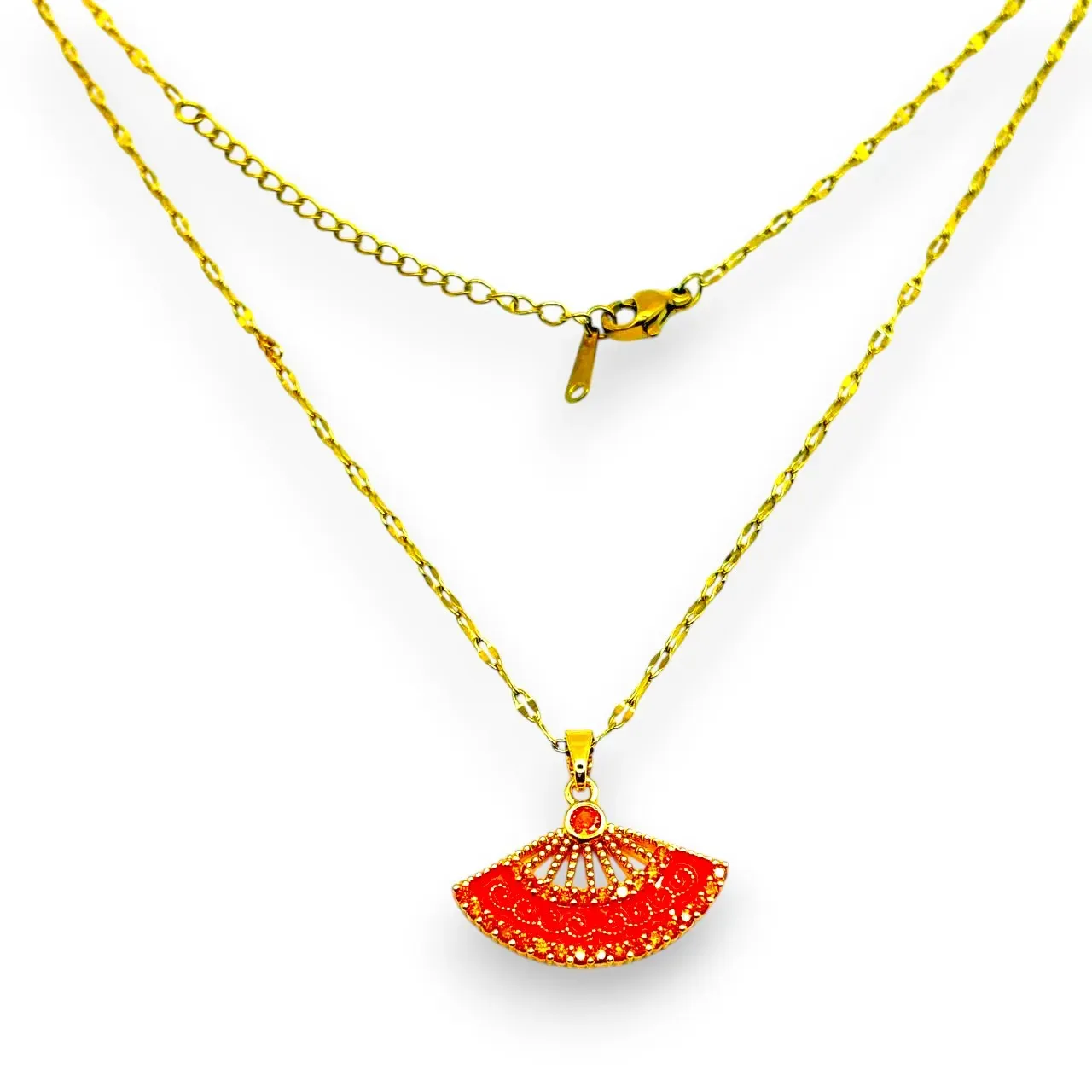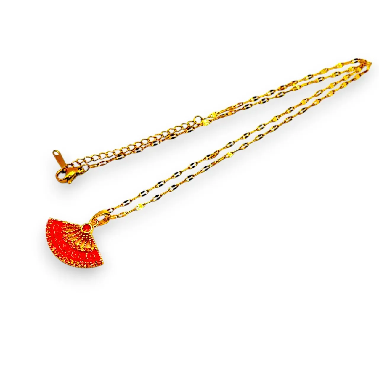 ✨ Kırmızı Yelpaze Kolye: Zarafet, Asalet ve Şıklığın Işıltısı!